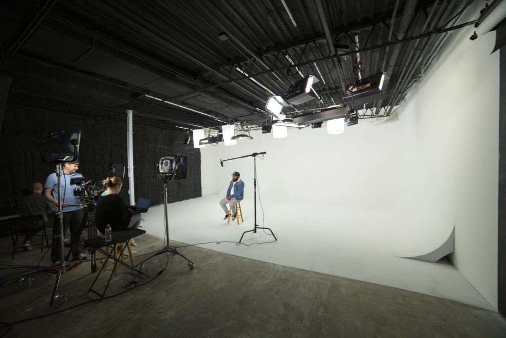 First Location Studio is a pre-lit 30′ x 30′ soundstage with a cyc wall for that perfect infinity white look. The sound proof studio is also acoustically treated with silent air conditioning to capture perfectly crisp dialog. Just because we’re close to the airport doesn’t mean you’ll ever notice once you’re inside. The studio and sound stage is ideal for films and video shoots including interviews, stand-ups, and commercials. We’ve also hosted our fair share of professional photoshoots. The space also includes a dedicated Hair and Makeup Studio as well as a 10-person conference room used for Video Village with a hardwired feed directly from the studio